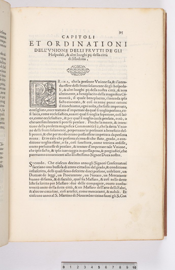Capitoli et ordinationi dell'Vnione delli frutti de gli hospedali, & altri luoghi pij della città di Modona. (p. 95-128) |