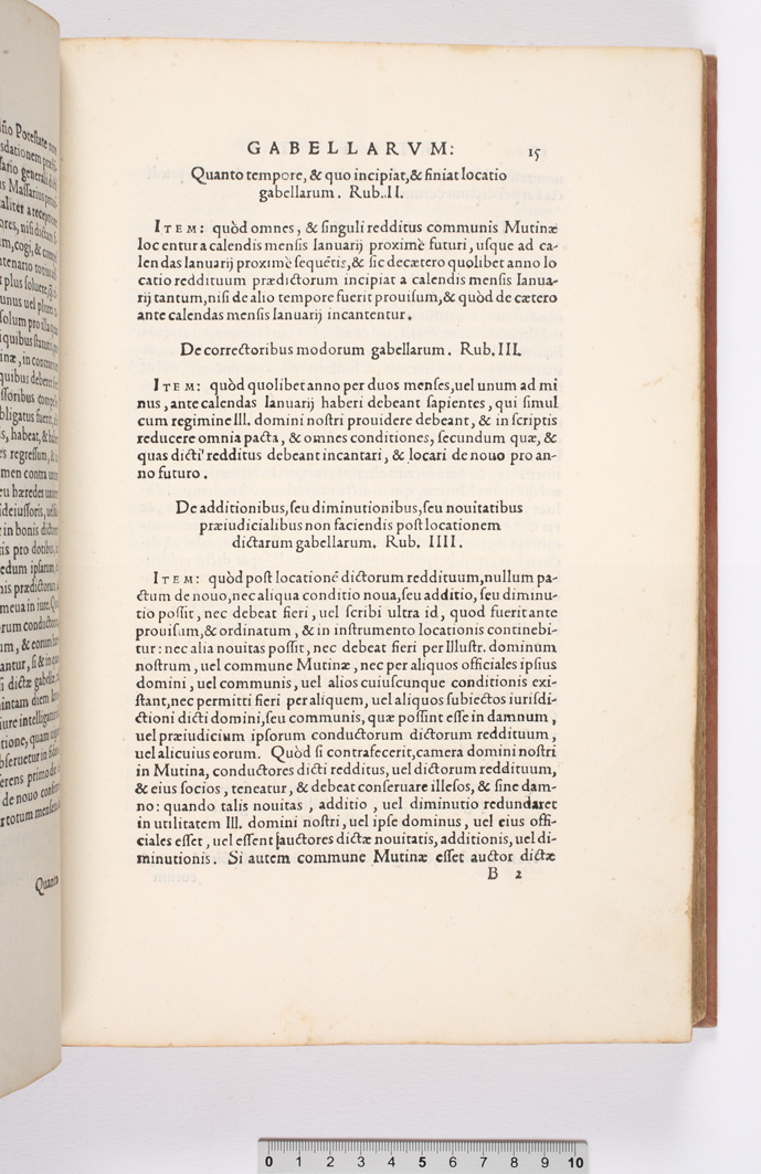 Literae, prouisiones, et proclamata gabellarum ciuitatis Mutinae. (p. 103-165) |