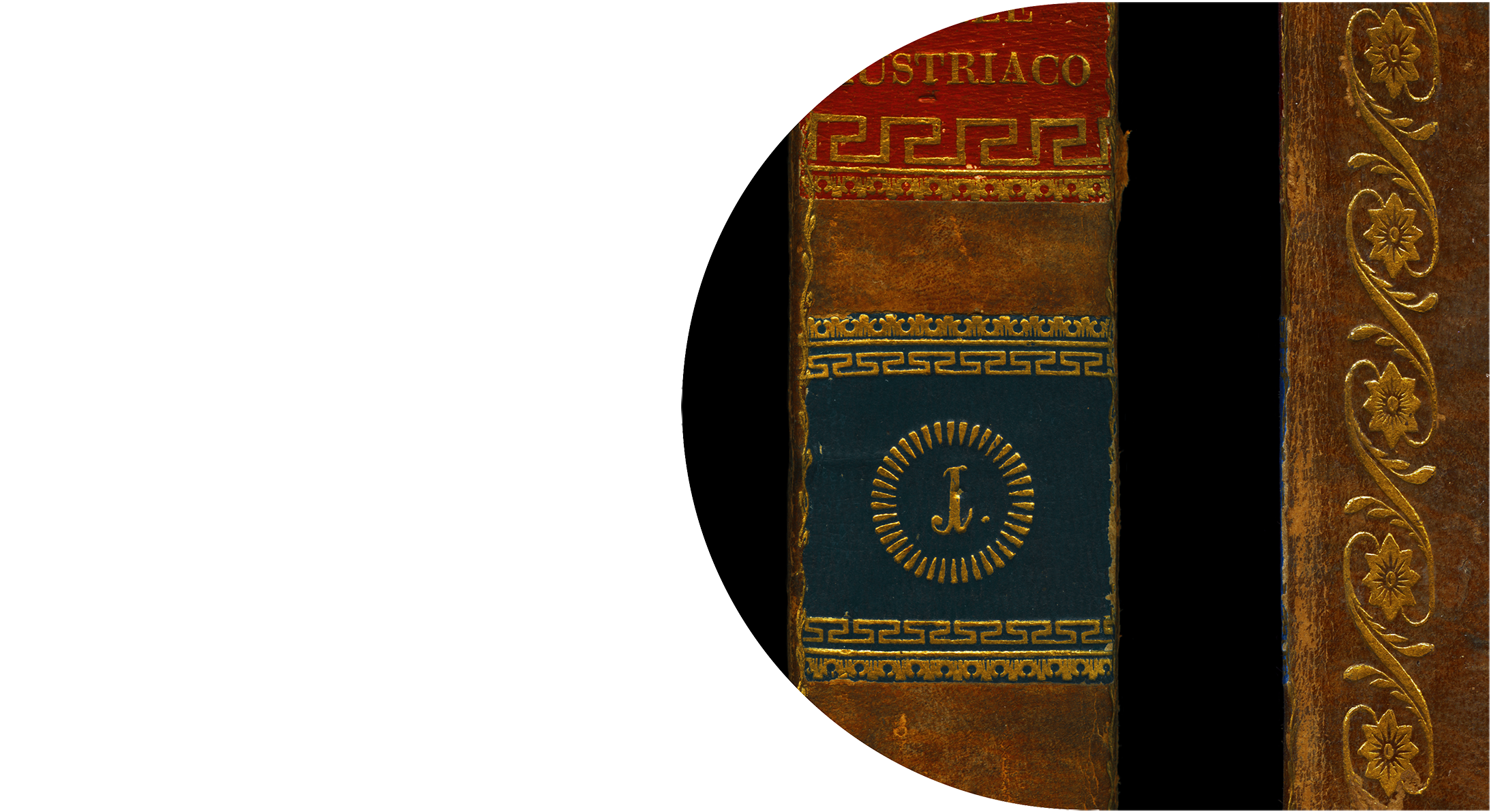 Legatura della prima metà del XIX secolo in piena pelle di vitello lavorata tipo radica e decorata in oro (mm 225 x 147 x 35); dorso liscio su quattro nervi; finti capitelli. Sui quattro lati dei piatti cornice con rotella che ripete fiore a otto punte su stelo a due foglie. Dorso suddiviso in cinque compartimenti da vari tipi di filetti e rotelle, con autore e titolo su fondo rosso al secondo compartimento, numerazione su fondo blu al quarto; sui due lati lunghi del dorso cornice data da motivo fitomorfo sottile e ondeggiante con piccole gemme. Sguardie marmorizzate del tipo Stormont a chiazze rosso carminio puntinate e venate di bianco, su fondo grigio con venature bianche. Tagli spruzzati in rosso; segnalibro in seta blu.